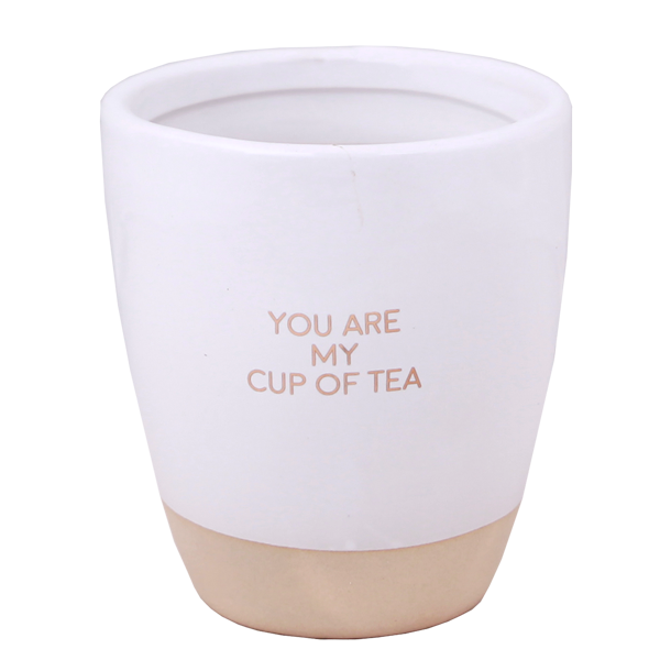 De witte keramieken mok met gouden quote You Are My Cup of Tea is na het branden te gebruiken als theemok – duurzaam, herbruikbaar en stijlvol.