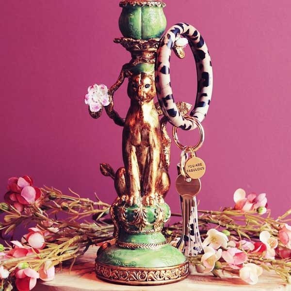 Deze elegante sleutelhanger van vegan leer in panterprint, is niet alleen een stijlvolle must-have, maar ook superpraktisch. Geen gedoe meer met zoekgeraakte sleutels!
