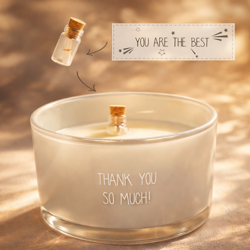 Flessenpost kaars - Momentje. Het is tijd voor een complimentje